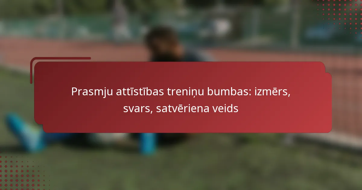 Kādas ir galvenās prasību specifikācijas prasmju attīstības treniņu bumbām?
